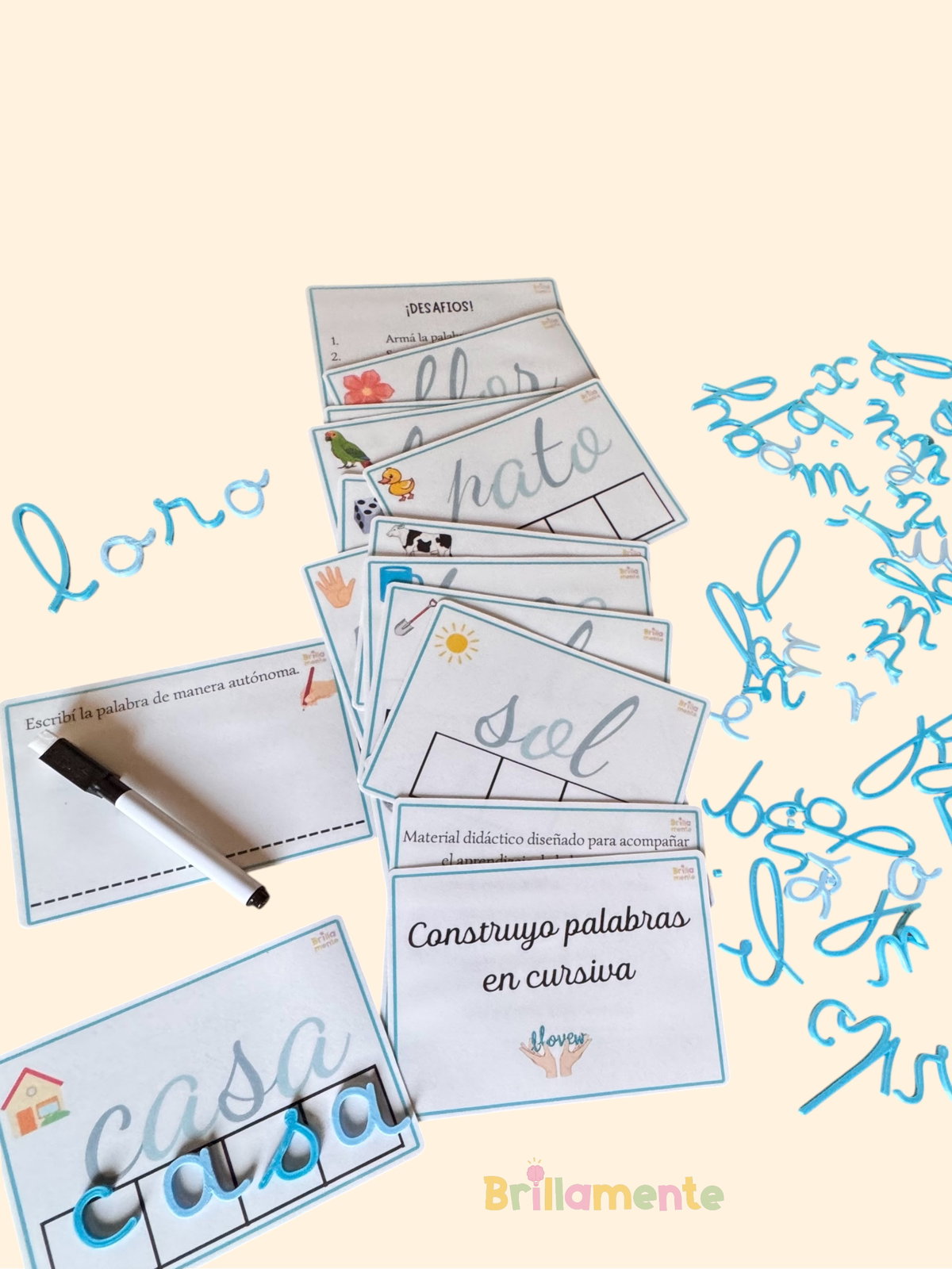 Un recurso diseñado para acompañar el aprendizaje de la escritura en cursiva de manera lúdica, guiada y significativa. Este kit invita a construir palabras utilizando letras móviles y luego reproducirlas por escrito, favoreciendo un aprendizaje activo y multisensorial