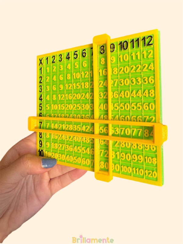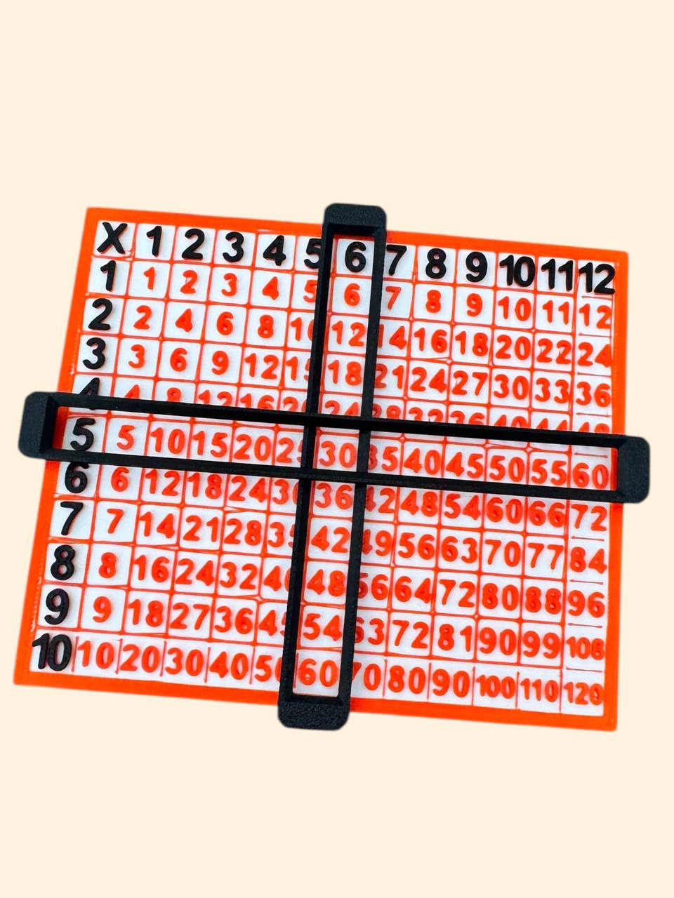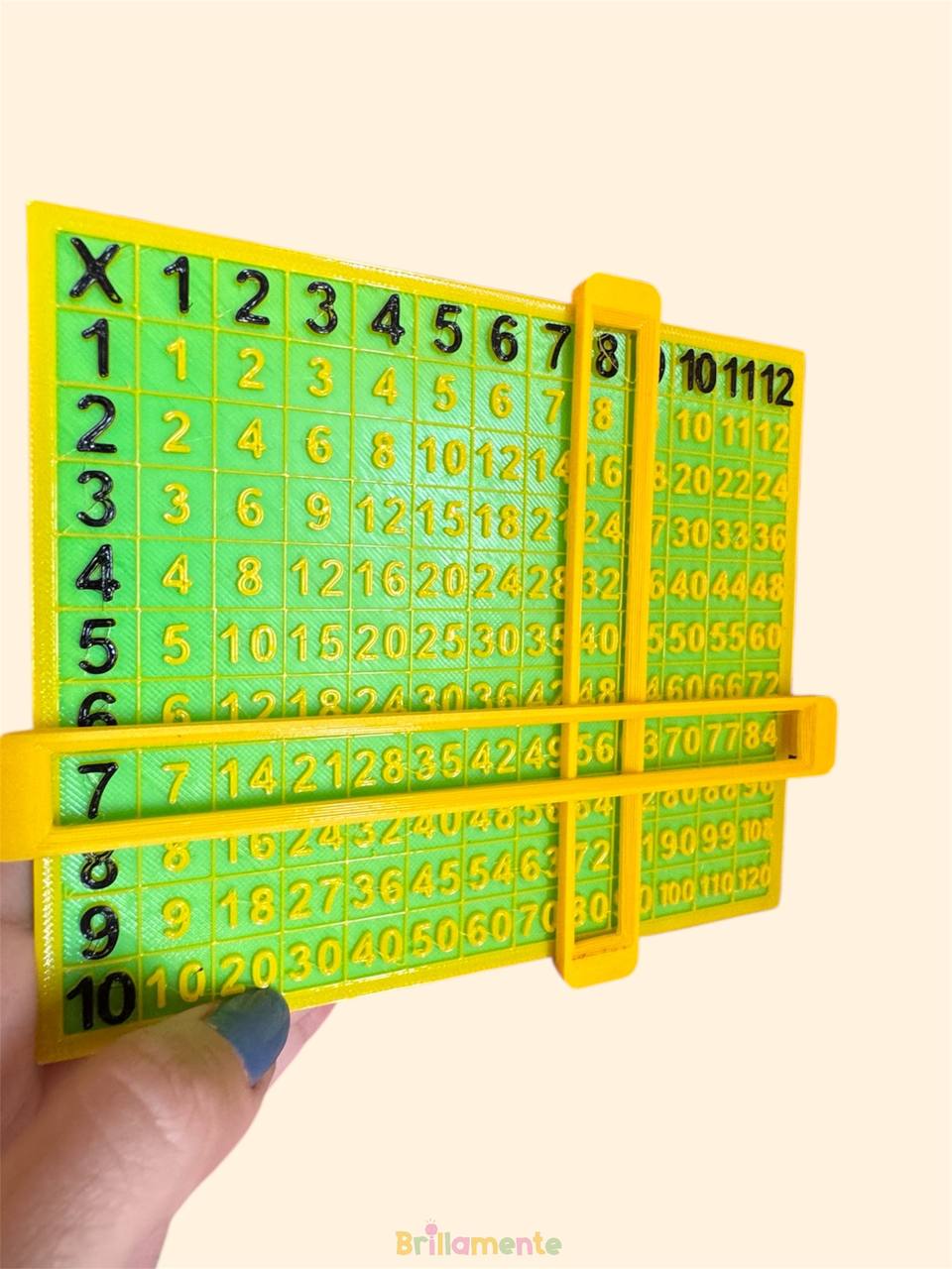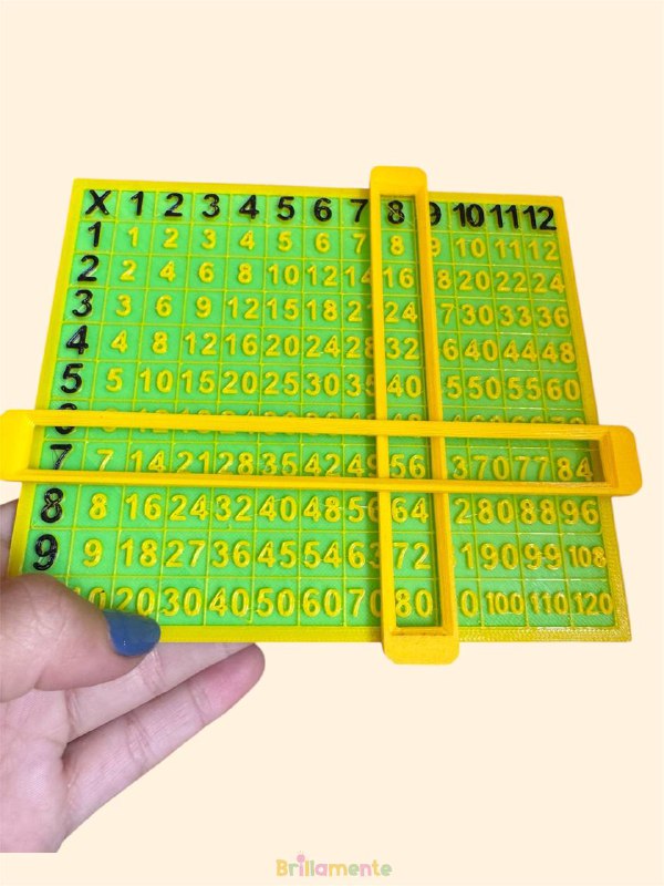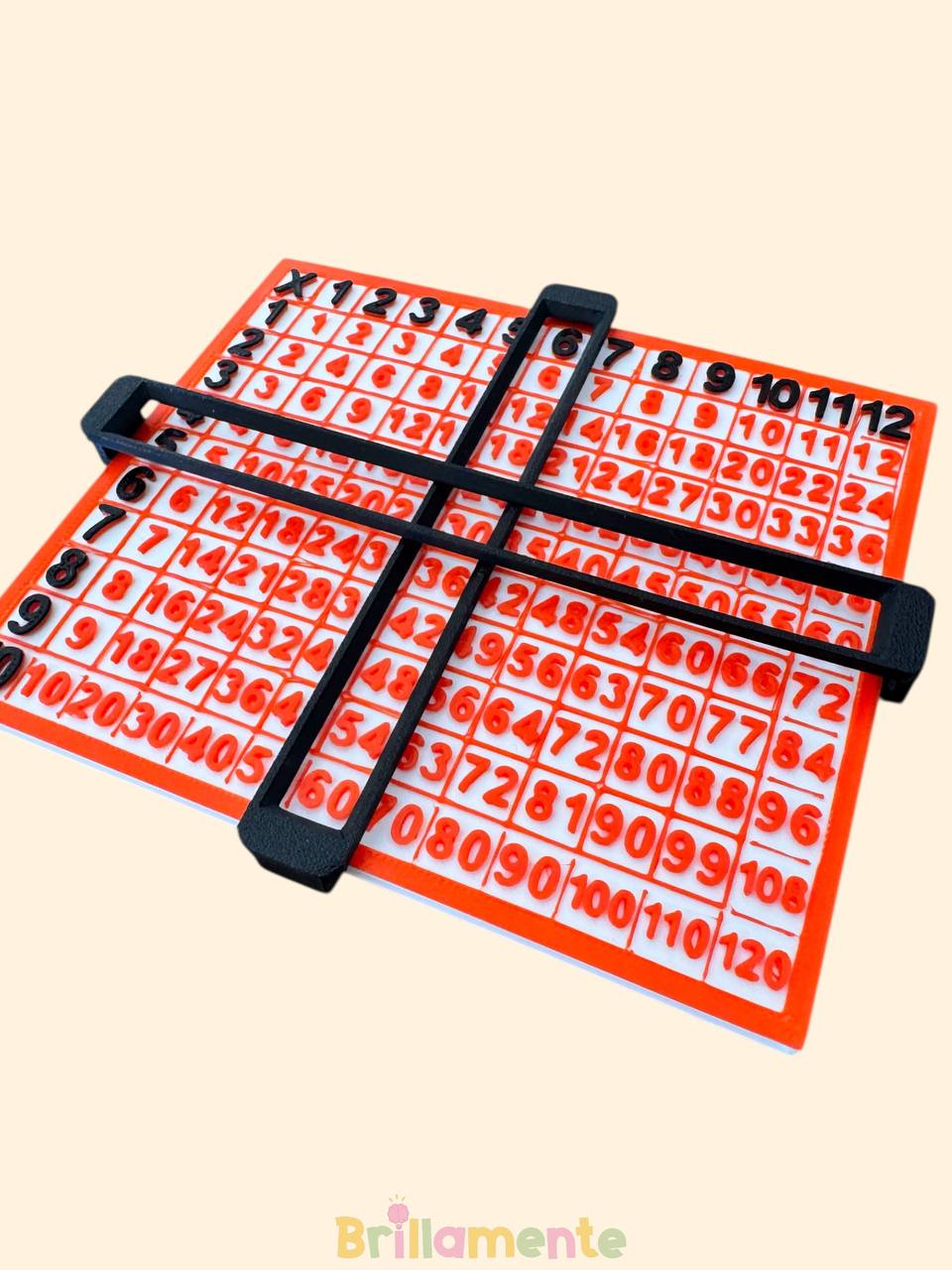 Es una cuadrícula numérica que muestra los resultados de las multiplicaciones. Al cruzar filas y columnas, el niño puede visualizar cómo se construyen los productos, comprender patrones y reforzar el pensamiento lógico-matemático.